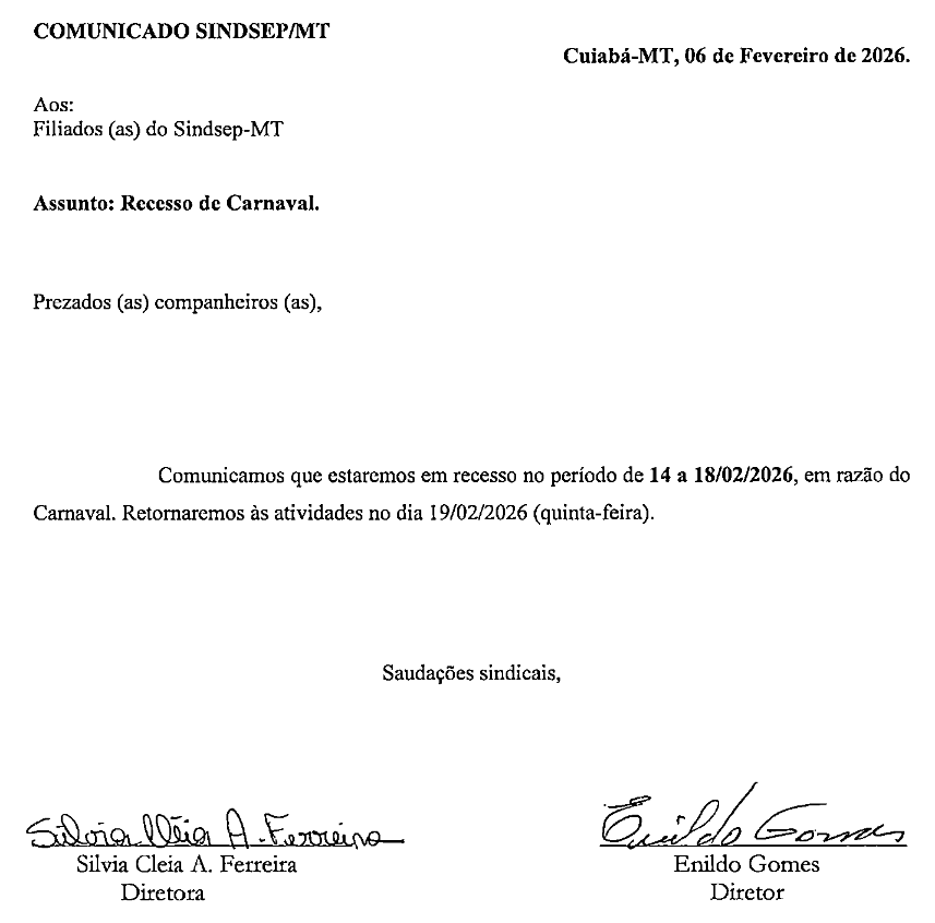 Reforçou-se o alerta quanto a golpes praticados por estelionatários que se passam por advogados ou representantes do sindicato para solicitar valores indevidos. A orientação é que os filiados sempre confirmem informações diretamente com os canais oficiais do Jurídico do Sindsep-MT antes de qualquer pagamento ou envio de documentos